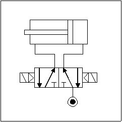 His actuation is made by an double effect pneumatic piston, the air being distributed by a 5/2 electro-valve with automated pilot and separated discharges. Gripper pneumatic diagram is as shown: