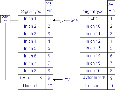 Robot interconnection with the manipulator is made by controller input/output port. His indicator is DSQC 327, being digital inputs/outputs. There are two slots of 8 inputs each and two slots of 8 outputs. The power needed to function in the I/O ports logic is a source of 24V cc.