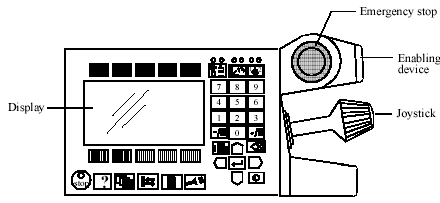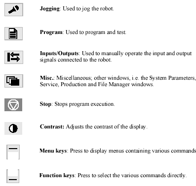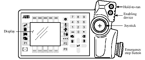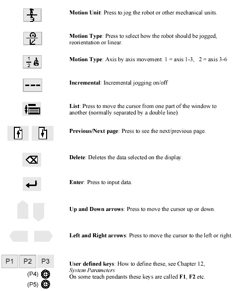 When naming files, routines, data, etc., text can be entered using the teach pendant. As there is no character keyboard available, the numeric keyboard is used in a special way