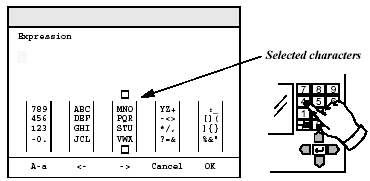The keys on the numeric keyboard correspond to the selected characters on the display.